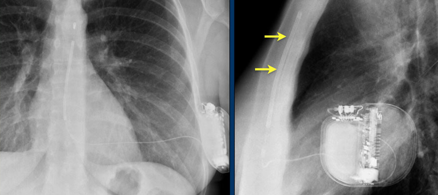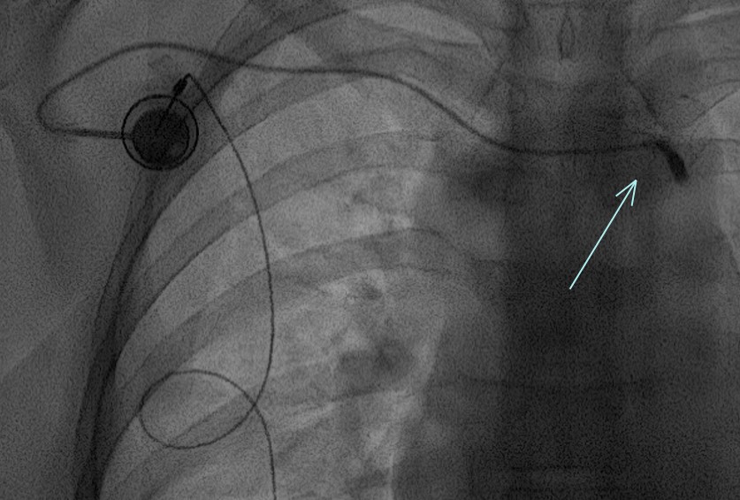 Malposition de l’extremité qui se balade dans la veine innominée G