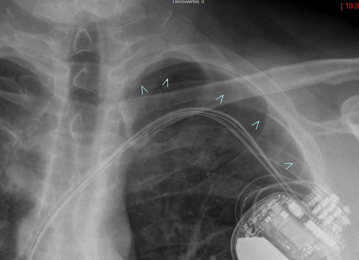 pace pacemaker pneu pneumothorax compliecation complication boitier tri cameral caméral tricameral pace maker défibrillateur