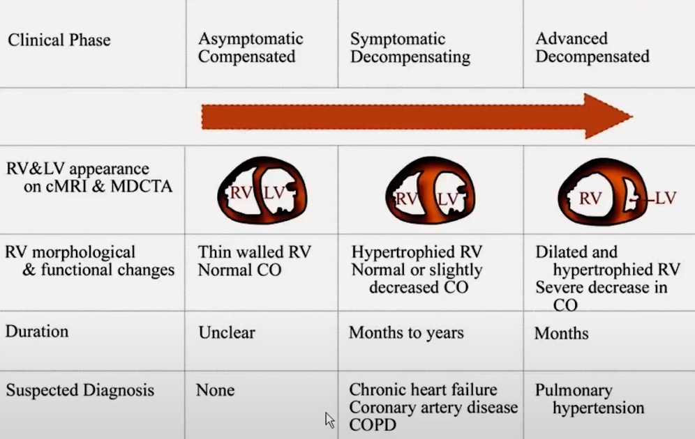 - A long terme, hypetrophie puis dilatation du VD