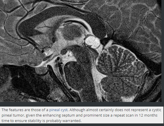- Attention si >10mm ou si portion charnue prenant le contraste (DD Pinéocytome)