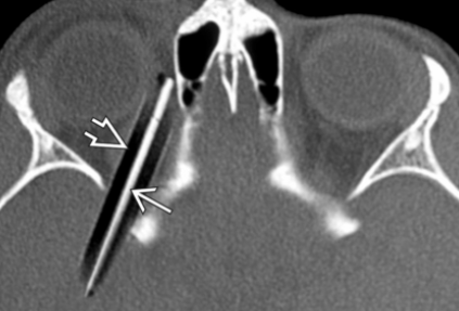 Metal Densité >1’000 HU Sharpnel Verre Plus dense que l’os Bois Hypodense presque comme l’air sur la fenetre tissus Stylo, coque en bois