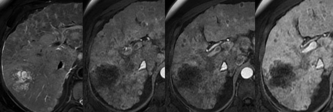 - Tardive = Prise de contraste persistante (tissus fibreux)