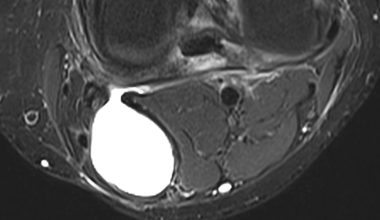 - Pseudokyste (paroi fibreuse, pas de synoviale)