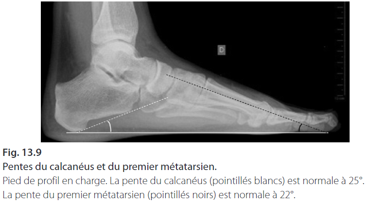 • angle formé par la tangente à la face plantaire du calcanéus et le plan d’appui
