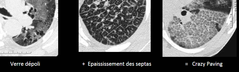 Proteinose pneumocystose CMV SDRA SRDA ARDS Hypersensibilité pneumonie pneumopathie médicament médicamenteuse alvéolaire protéinose bronchio-alvéolaire néoplasie lipidique COP chronique éosinophile