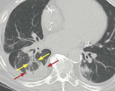 • Vaisseaux et bronches courbes (“queue de comète”)