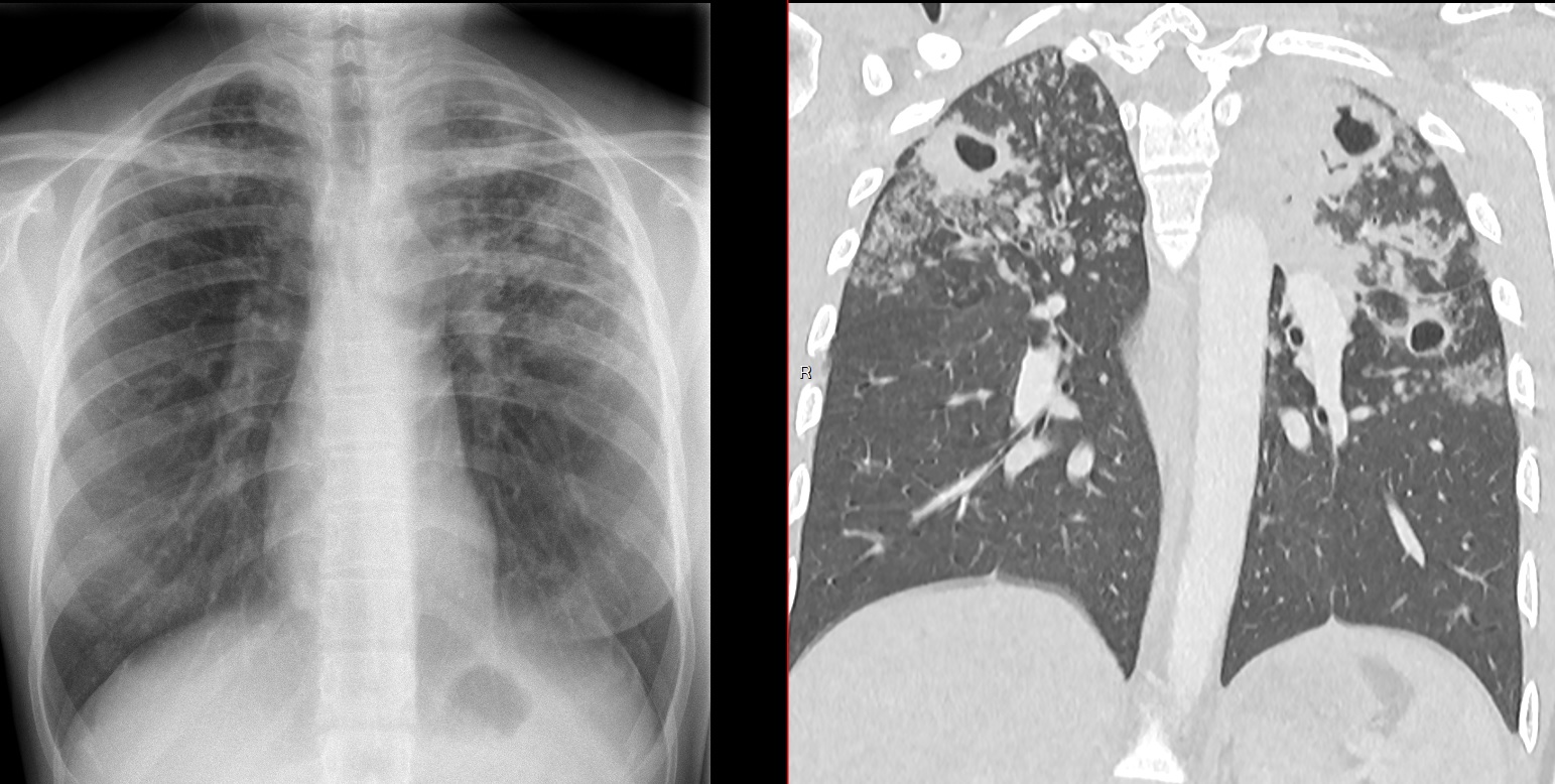 - Cavernes (rares, chez les HIV ou immunodéprimés→ on parle de TB primaire progressive)