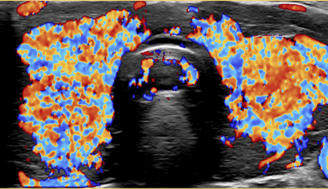 Au Doppler: Thyroid Inferno, vu parfois dans le Thyroïdite de Hashimoto US