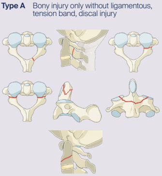 fractures vertévrales vertébrales vertèbres fracture vertébrale condyle occipital atlas atlanto axis axial dent odontoide ondotoidale axo occipito charnière cranio cervicale occipitale base classification Type A Type B Type C I II III