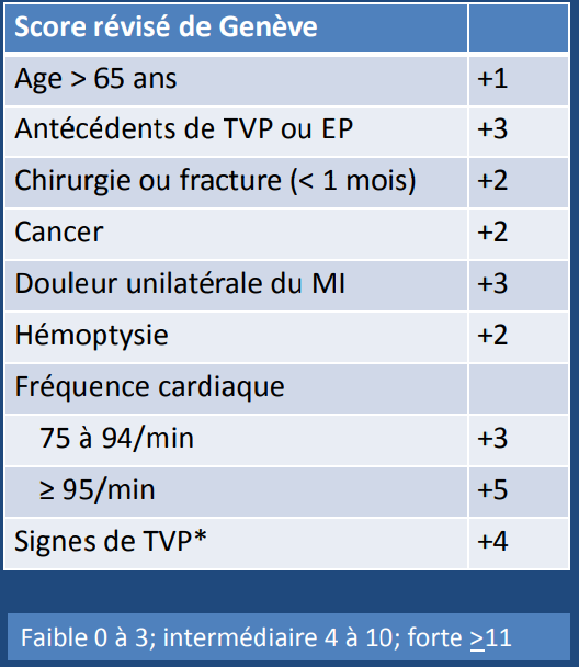 EP embolie embole embolisme pulmonaire pulmonary Geneva probabilité intermédiaire faible forte