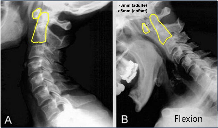 - Distance dent-C1 en Flexion >3mm (>5mm enfant)